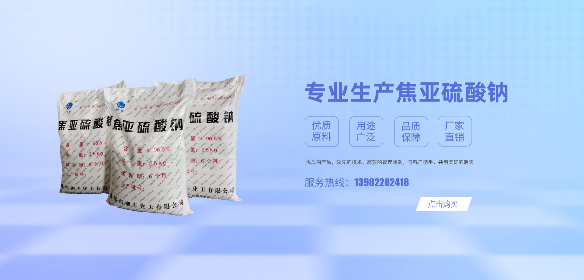 成都市湘豐化工有限公司座落在四川省成都市新津精細化工園中,占地10000多平方米,是一家有十幾年焦亞硫酸鈉生產(chǎn)經(jīng)驗的企業(yè),設計年生產(chǎn)能力2萬噸。 焦亞硫酸鈉又稱二硫五氧酸鈉,重硫氧,有著廣泛的用途:在醫(yī)藥工業(yè)中用于生產(chǎn)氯仿、苯丙砜和苯甲醛;橡膠工業(yè)用做凝固劑;印染工業(yè)用作棉布漂白后的脫氯劑、棉布煮煉劑;制革工業(yè)用于皮革處理,能使皮革柔軟,豐滿、堅韌,具有防水、抗折、耐磨等性能...